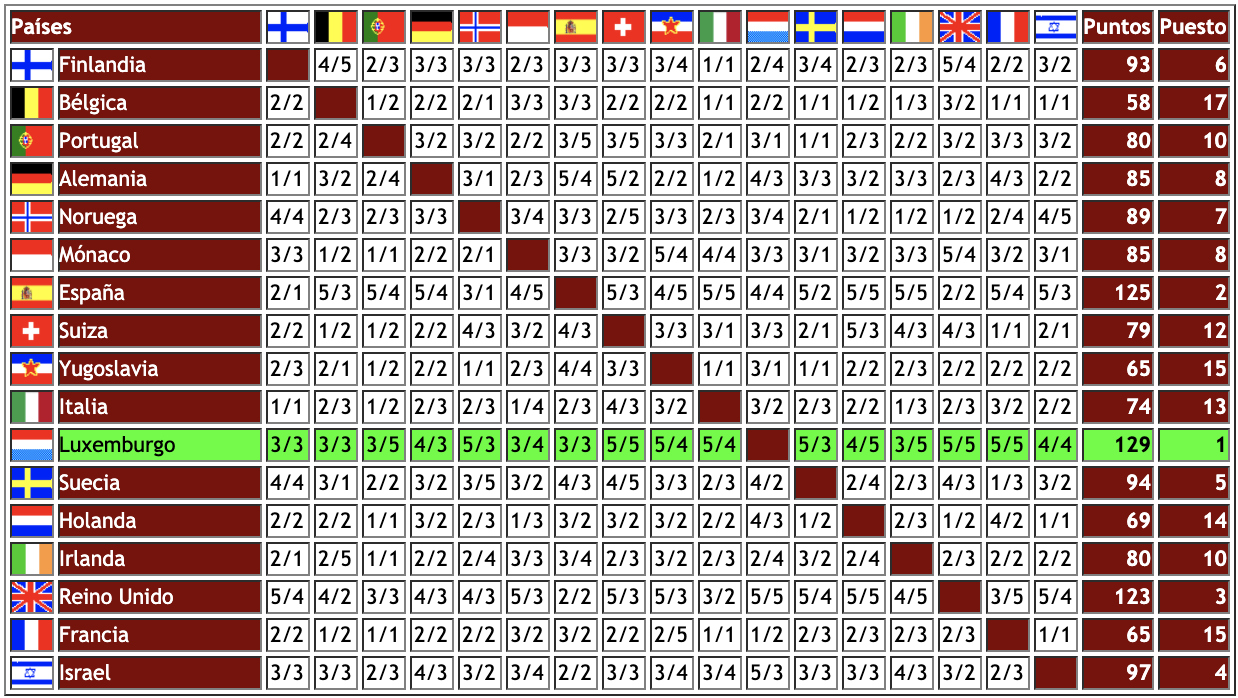 Ganador: Luxemburgo (la cuarta victoria para Luxemburgo)