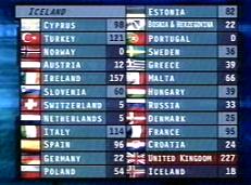 - Islandia. Paul Oscar (Páll Óskar Hjálmtýsson) interpretó Minn hinsti dans (Mi último baile), con aires techno-pop alude al baile final de una diva, el canto de un cisne moribundo rodeado de lujo, esplendor y decadencia. Acabó 20º con 18 puntos. La grabó en inglés (My dear) y francés (Mon ultime danse).