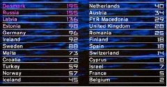 - Rumania. En la final nacional compitieron trece temas y el televotó dio la victoria al grupo Taxi (Dan Teodorescu, Adrian Bortum, Georgică Pătrănoiu y Lucian Cioargă) con el tema The moon, una balada de aires folk que gana en el tempo mientras se desarrolla en la que Dan se dirige a su amada diciéndole que ella ha sido capaz de mirar en su alma y encontrar la humanidad en su interior. Con 25 puntos quedaron en 17º lugar. En la selección nacional cantaron el tema en rumano (Luna).