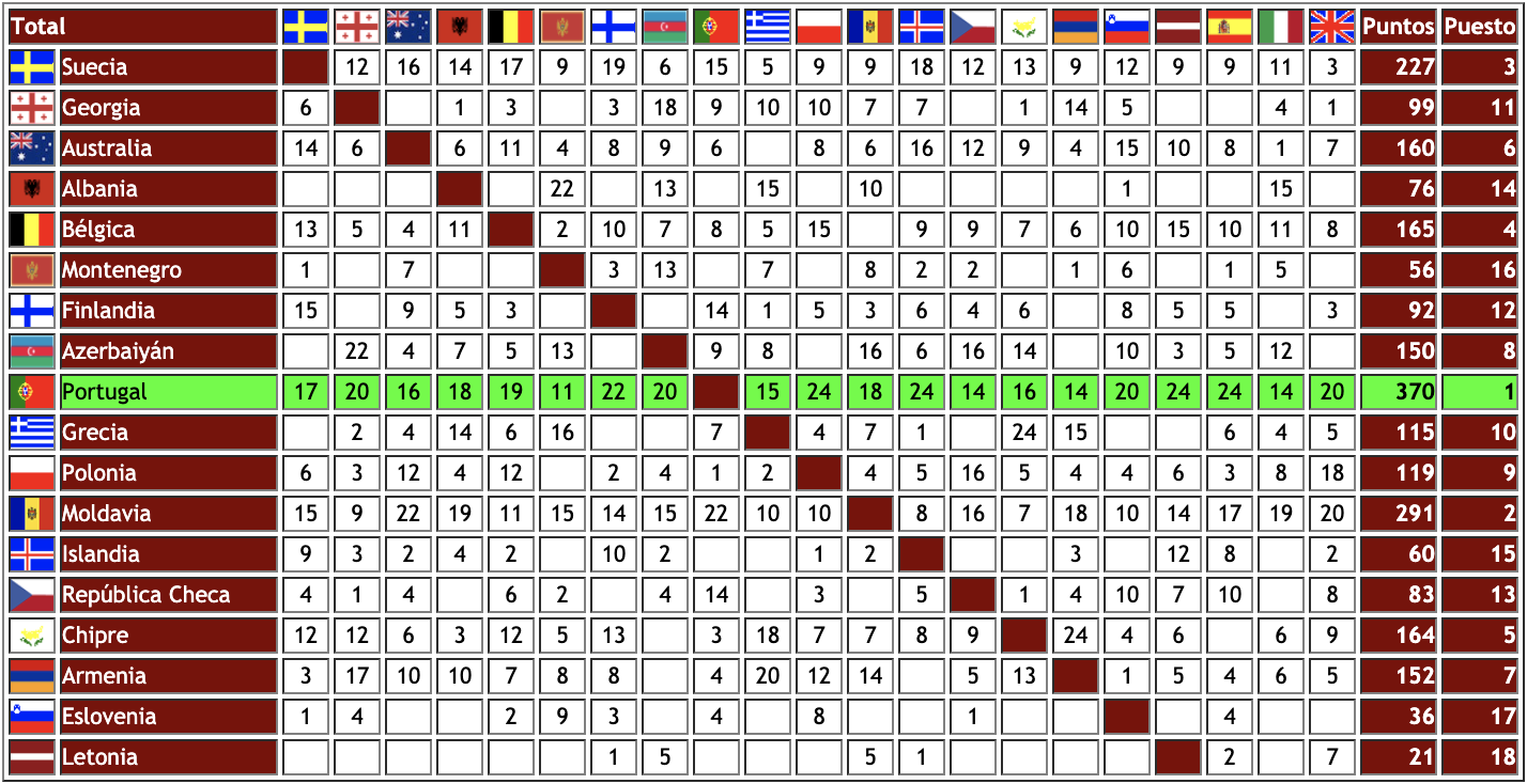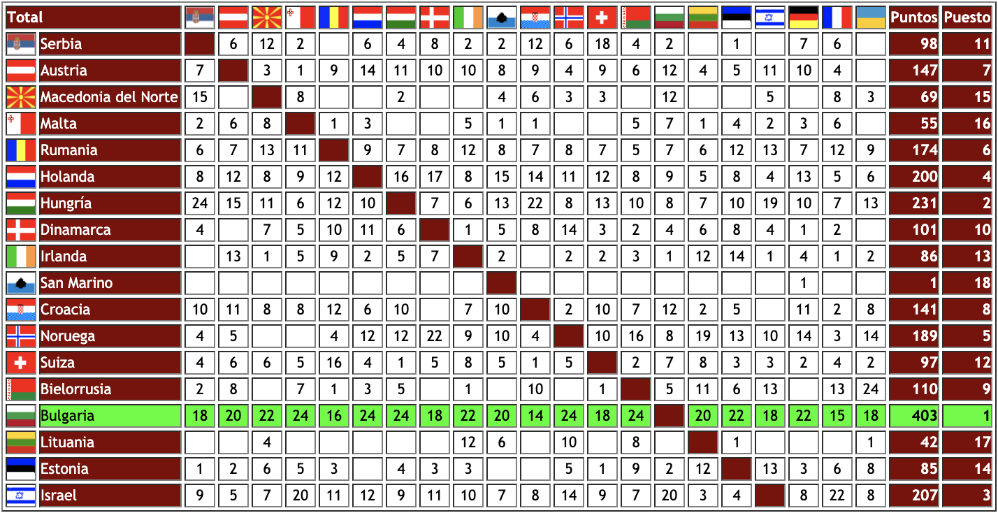 – El límite para el pase a la final lo marcó Grecia con 115 puntos, quedándose fuera Georgia con 99 puntos.
