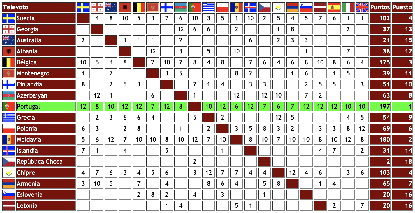 – El televoto sí dejó a cero puntos a Austria. El jurado hizo lo propio con España.