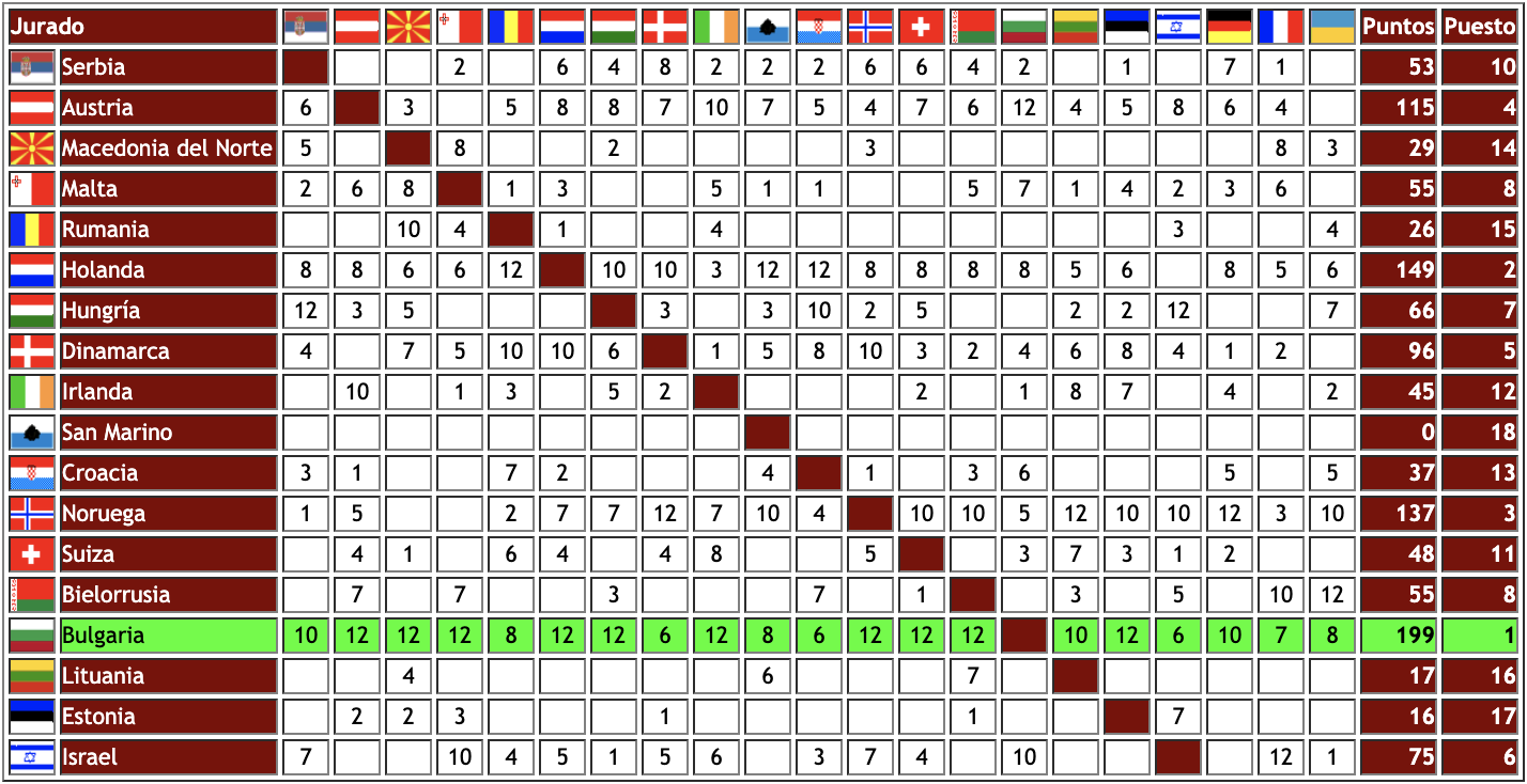 – Bélgica, en el caso contrario, quedó 3ª en el televoto, pero los jurados la dejaron en 13ª posición.